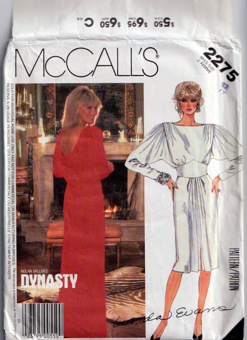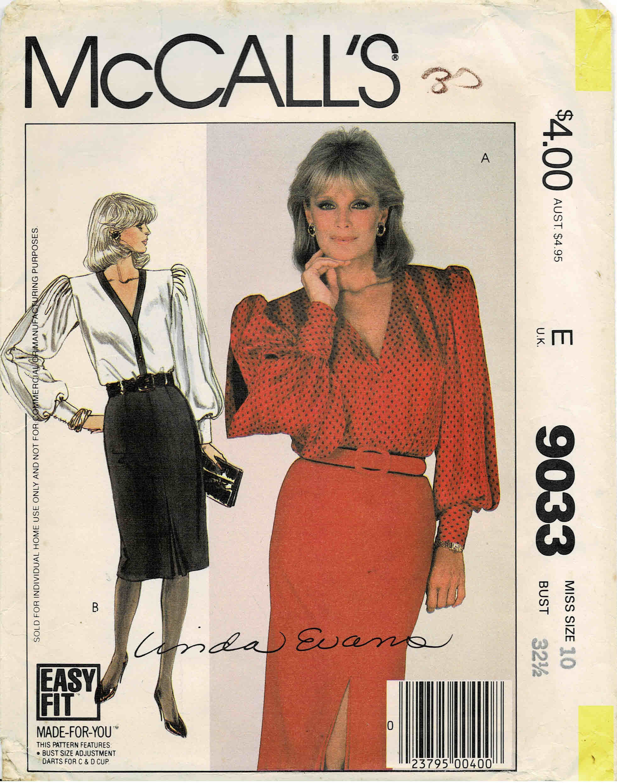 20S Linda Evans 1231 Dynasty Blouse Sewing Pattern Size 12