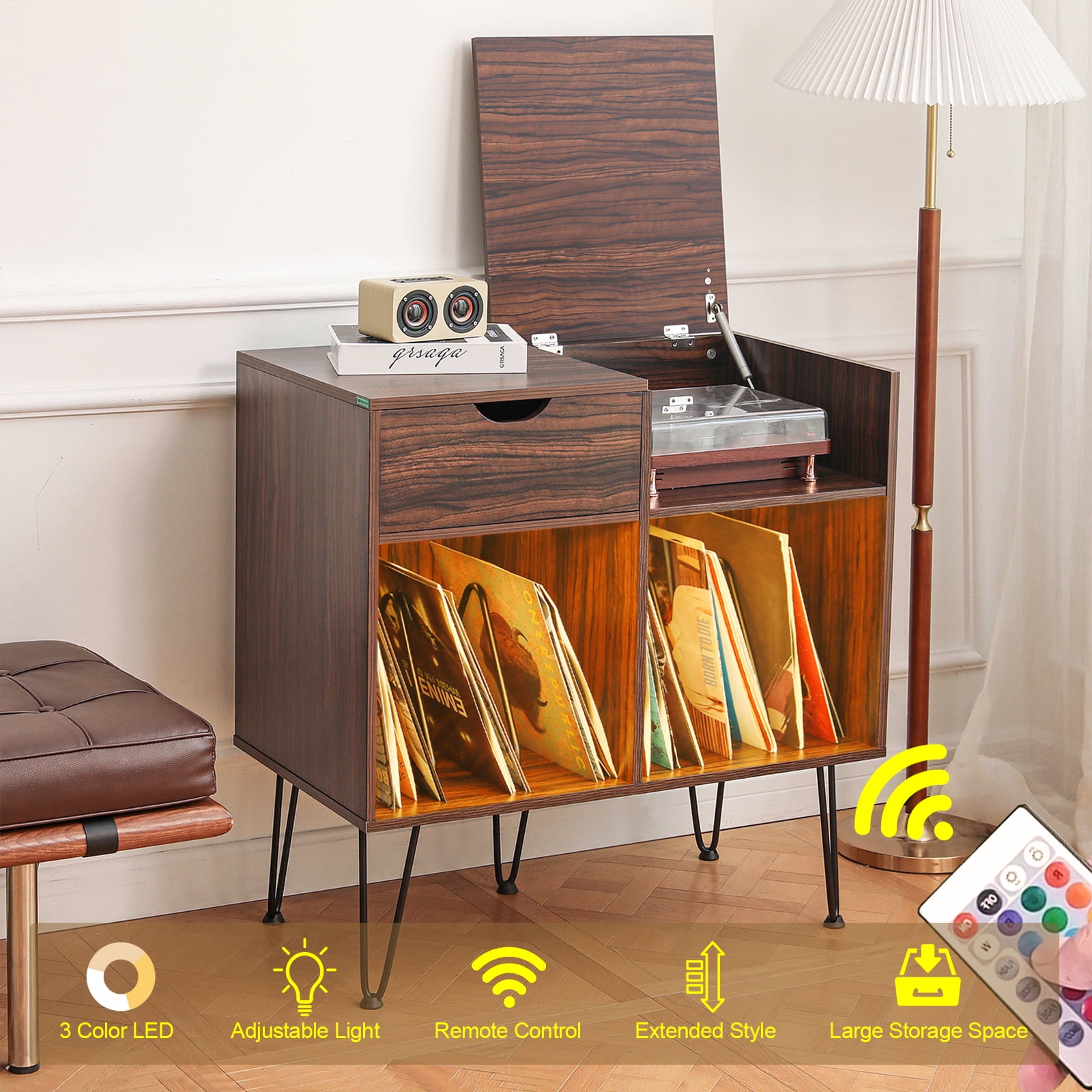 Hommpa Modern Turntable Stand Vinyl Record Storage Table Cabinet For Living Room Brown 20 5 X17 9 X34 1 Walmart Com